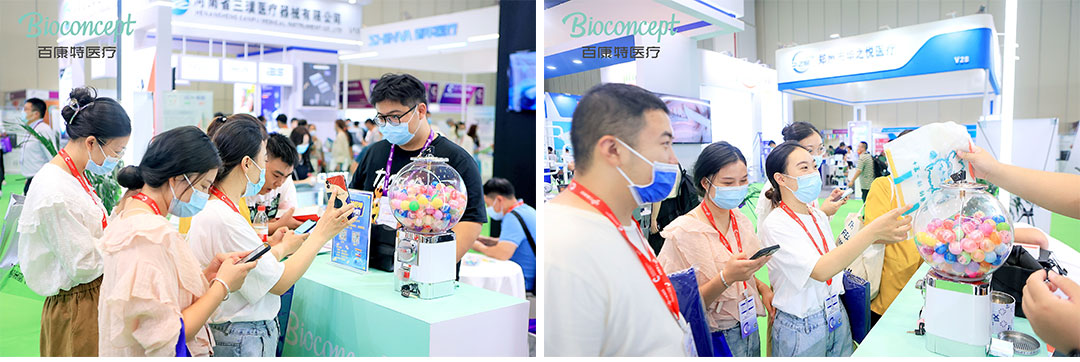 百康特医疗采用高级时尚的深灰色展台设计,惠及更多人的精神和强大的企业实力保障,在商务洽谈区吸引了不少意向客户。此外, 展台设置了送福利游戏,一开馆便涌来一大波粉丝围观,让我们一起来看看精彩盛况吧: